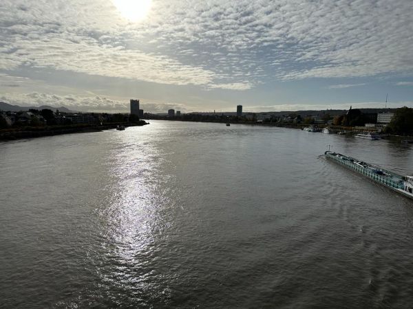 Das Foto zeigt den (gut gefüllten) Rhein bei Bonn am gestrigen Freitag.