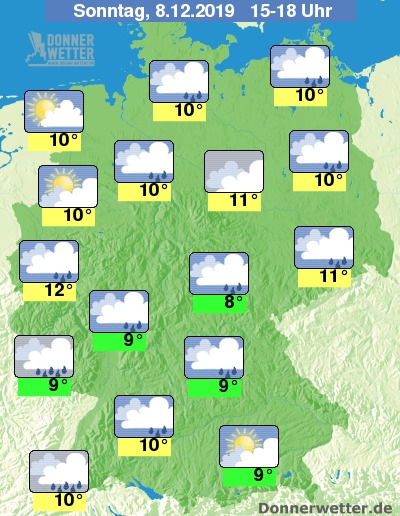 Die Temperaturen erreichen Werte um 8 Grad im Thüringer Wald und um 12 Grad im Rheinland.