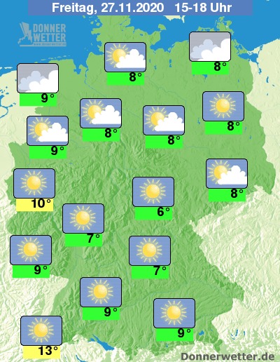 Die Temperaturen bewegen sich allgemein zwischen 5 und 10 Grad, im Breisgau kann es mit sonniger Unterstützung stellenweise bis zu 13 Grad mild werden. Im dichten Einheitsgrau halten sich die Werte aber meist unterhalb der 5 Grad - Marke.