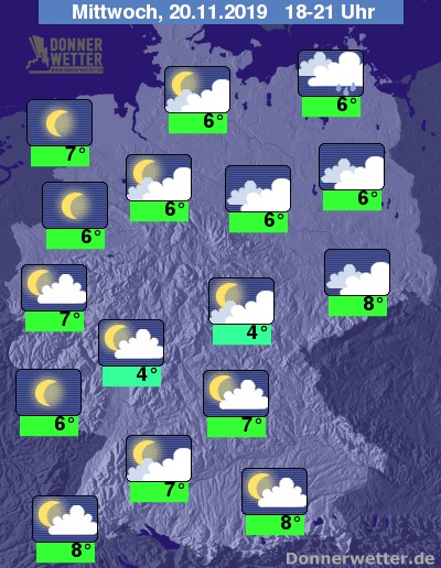 Am Abend dominieren im Nordosten dichtere Wolken mit örtlichen Tropfen im Ostseeumfeld. In den übrigen Landesteilen präsentiert sich der Himmel wechselnd bewölkt bis klar. Vor allem im Westen leuchten die Sterne für längere Zeit.
