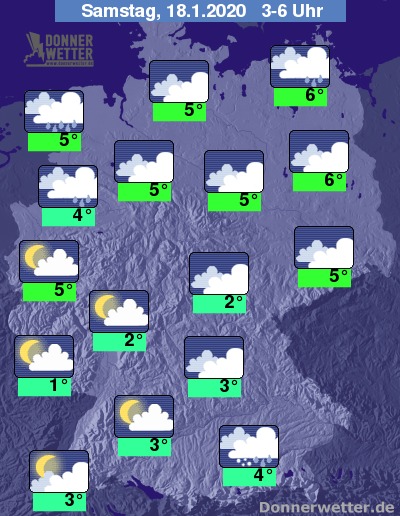 In der Nacht zeigt sich der Himmel verbreitet bedeckt, Auflockerungen beschränken sich in den kommenden Stunden vor allem auf den Südwesten und Nordosten des Landes. Westlich der Weser sowie im Südosten fallen in der Nacht zeitweise Niederschläge, an den Alpen auch Schnee. Die Schneefallgrenze sinkt auf 600 bis 700m. In den übrigen Landesteilen bleibt es meist trocken.