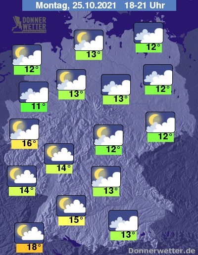 In der Nacht zum Dienstag ziehen im Nordwesten und Westen Deutschlands teils kompakte Wolken mit einzelnen Schauern durch. Im übrigen Land ist es aufgelockert oder stark bewölkt, dazu bleibt es trocken. Die Temperatur sinkt auf 10 Grad am Rhein und bis 5 Grad in Oberbayern.