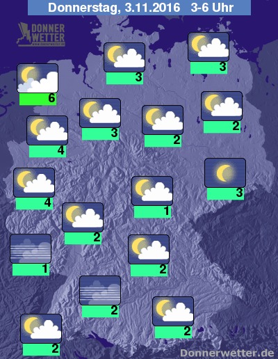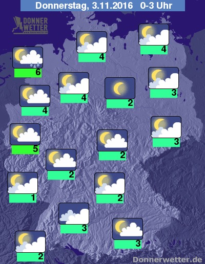 In der zweiten Nachthälfte klart es in weiten Teilen Deutschland etwas auf. Im Süden ziehen Nebelfelder durch das Land.