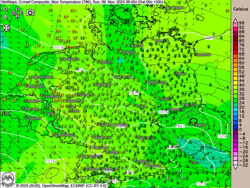 Die Temperaturen erreichen Höchstwerte um 6 bis 13 Grad.