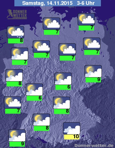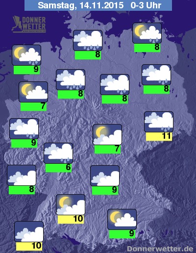 Die Temperaturen fallen auf Werte von 11 Grad C bis 7 Grad C.