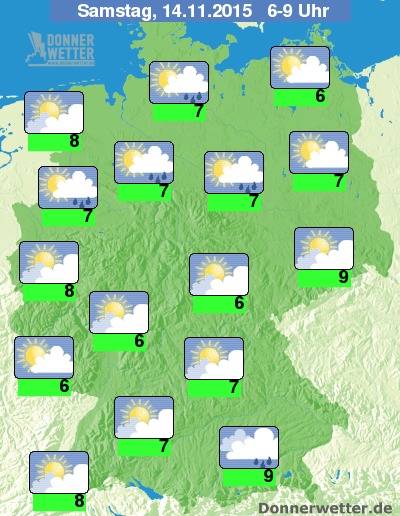 An der Nordseeküste, der Weser entlang beginnt der Morgen mit vereinzelten Schauern. In Oberbayern ist ebenfalls nach langer Zeit wieder leichter Regenfall möglich. Zwischen dem Schwarzwald und der Sächsischen Schweiz ist das Wetter wechselhaft bewölkt, teils heiter.