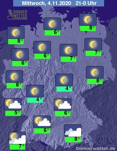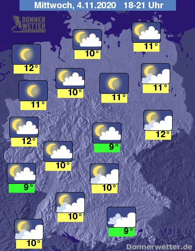 Am Abend gestaltet sich der Himmel wechselnd bewölkt bis klar. Südlich der Donau bleiben die Wolken auch noch dichter.