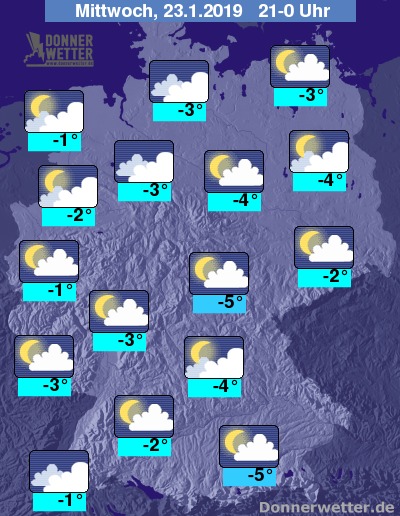 Bis Mitternacht zeigen sich teilweise Mond und Sterne und die Temperaturen sinken überall im Lande in den frostigen Bereich.