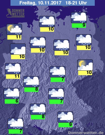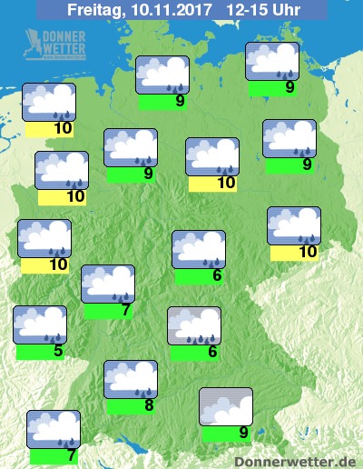 Die Höchsttemperaturen liegen dazu am späten Nachmittag bei rund 6 Grad in der Pfalz und bei Werten um die 10 Grad in weiten Teilen Norddeutschlands.