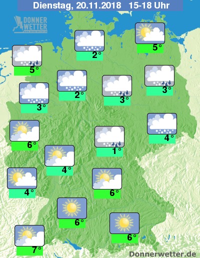 Am frühen Nachmittag kann es über den nördlichen und östlichen Mittelgebigen zeitweise schneien auch über Niedersachsen tanzen stellenweise Flocken vom Himmel, in tiefen Lagen tröpfelt es zum Teil auch. Im übrigen Land wechseln sich kurze Aufheiterungen mit dichteren Wolken ab und nur vereinzelt fällt etwas Regen oder Schnee.