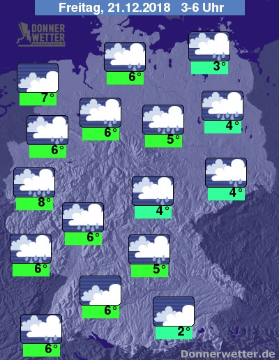 Die Temperaturen bewegen sich zwischen 3 Grad in der Uckermark und 9 Grad in der Kölner Bucht.