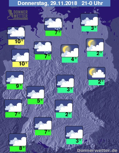 Zu den Frühstunden liegen die Temperaturen in der Osthälfte bei 1 bis 4 Grad, in der Westhälfte bei milden 5 bis 10 Grad.