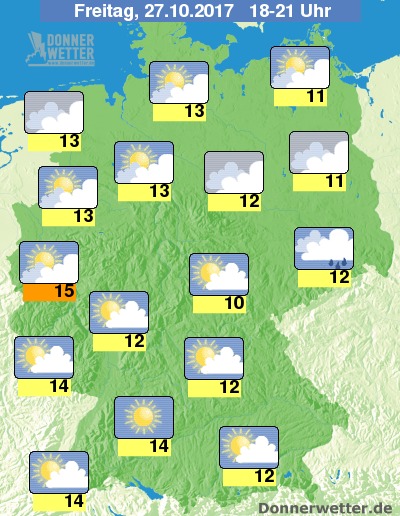Dabei bleibt es jedoch etwas kühler als an den vorangegangenen Tagen. Im Thüringer Bergland bleibt das Thermometer bereits bei kühlen 10 Grad stehen, am Rhein reicht es immerhin noch für Werte um die 15 Grad.