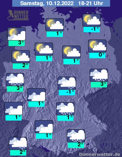 In den Abendstunden weiten sich Niederschlagsgebiete vom Alpenrand bis zu den östlichen Mittelgebirgen aus, so dass es hier zeitweise schneien kann. Auch im Westen sind einzelne Schneeregenschauer möglich. In den übrigen Landesteilen bleibt es bei wechselnder, teils auch starker Bewölkung meist trocken.
