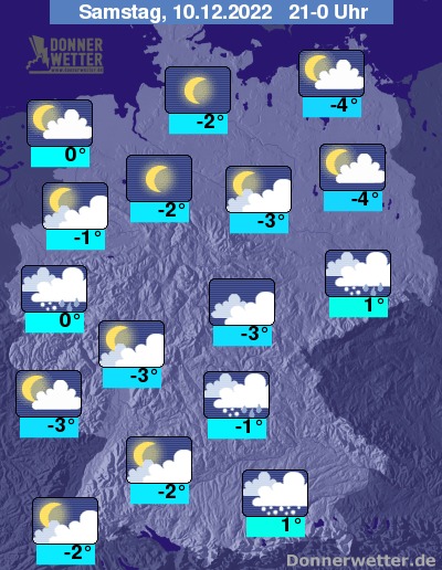 Die Temperaturen gehen bis Mitternacht auf Werte um 1 bis -4 Grad zurück.