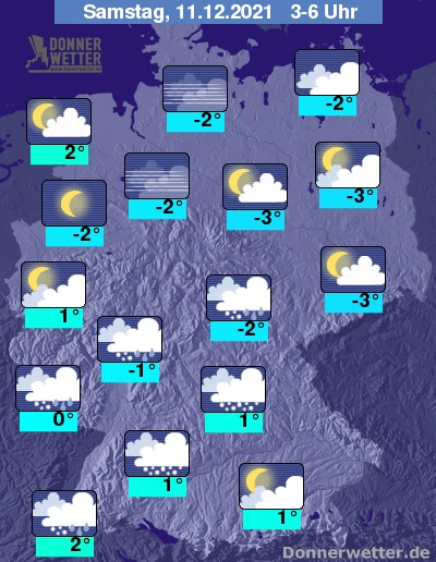 Die Temperaturen gehen in den frühen Morgenstunden auf Werte um -3 Grad in Dresden und 2 Grad am Hochrhein zurück.