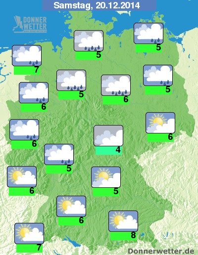 Heute kann sich im Süden des Landes zeitweise die Sonne zwischen den Wolken zeigen, aber auch hier zieht es sich am Nachmittag zu und es fällt gebietsweise Regen, sonst ist es bereits von Anfang an meist stark oder dicht bewölkt und es fällt immer wieder Regen. Dazu weht ein oft starker, in Böen und an den Küsten stürmischer, und hier in Böen auch orkanartiger Wind. Die Temperatur steigt auf 4 Grad im Vogtland und bis 8 Grad in München.