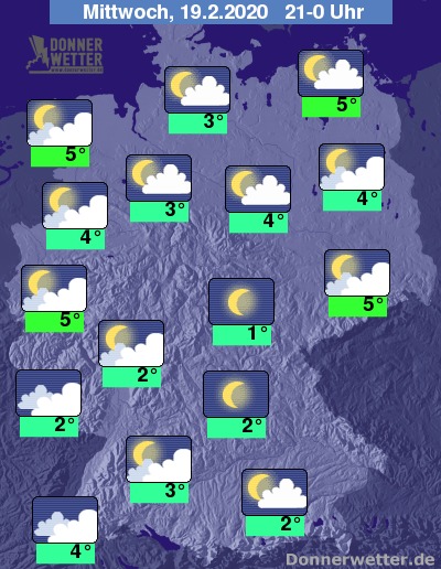 Am Abend fällt im südöstlichen Bayern noch etwas Regen oder Schneeregen, in höheren Lagen auch Schnee. In Mecklenburg-Vorpommern kann es noch örtliche Schauer geben. Sonst gibt es eine diagonale Zone, in der zeitweise die Sterne zu beobachten sind. Im Nordwesten überwiegen die Wolken.