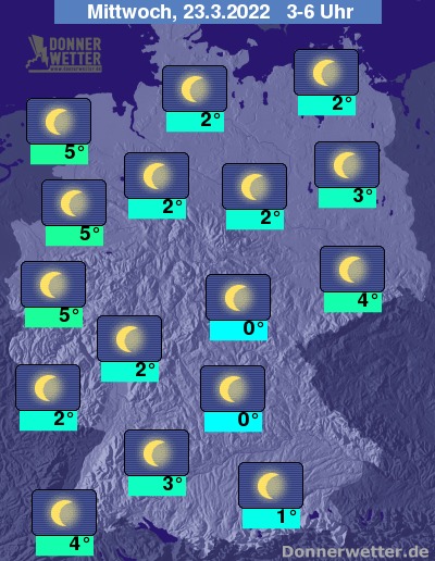 In der Nacht zum Mittwoch ist der Himmel sternenklar, dabei bleibt es trocken. Die Temperatur sinkt auf 5 Grad am Niederrhein und bis 0 Grad in Mittelfranken.