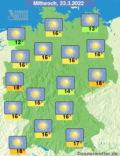 Am Mittwoch wird es verbreitet sonnig, dabei bleibt es trocken. Die Höchstwerte erreichen 12 Grad an der Nordseeküste und bis 18 Grad in Freiburg.
