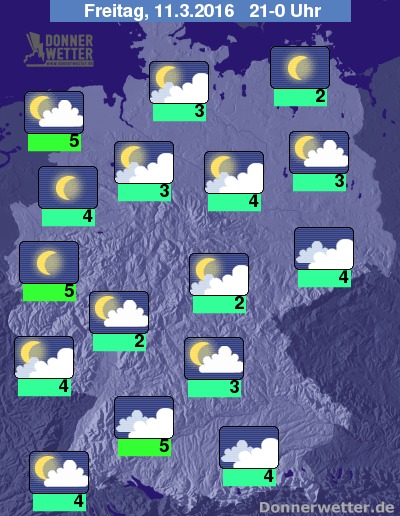 In der Nacht zum Samstag ziehen über den Osten und am Alpenrand dichte Wolken durch, die hier und da auch etwas Regen, Schneeregen oder Schnee bringen können, dabei besteht stellenweise Glättegefahr! Im übrigen Bundesgebiet ist es hingegen meist sternenklar oder nur locker bewölkt, dabei bleibt es trocken. Stellenweise bildet sich Nebel und Rauhreif! Die Temperatur sinkt auf 3 Grad in Dresden und -2 Grad im Eichsfeld.