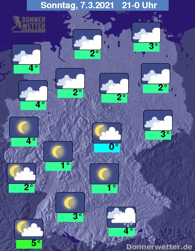 Die Temperaturen gehen am späteren Abend auf Werte um 5 Grad am Hochrhein und 0 Grad im Thüringer Becken zurück.