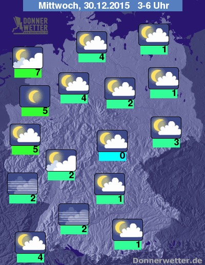 In der Nacht zum Mittwoch ist es mal locker, mal aufgelockert bewölkt, im Westen und Südwesten klart der Himmel verbreitet auf. Es bleibt landesweit trocken bei Tiefstwerten von 7 Grad an der Nordsee und bis 0 Grad im Vogtland. Im Südwesten bildet sich gebietsweise Nebel oder Hochnebel. An der Ostsee weht teils starker Wind.