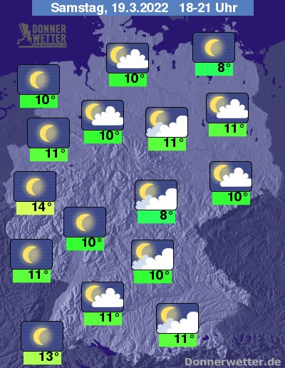 Heute Abend ist es nach Westen hin weitgehend sternenklar, sonst ist es oft gering bis wechselnd bewölkt, gebietsweise aber ebenfalls sternenklar. Es bleibt überall trocken bei 8 Grad in Jena und bis 14 Grad in Köln.