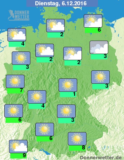 Heute bleibt es vor allem über der Südwesthälfte verbreitet sonnig und trocken, im Norden, Nordosten und Osten ziehen hingegen oft auch dichte Wolken auf, die hier und da etwas Regen oder gefrierender Regen bringen können, dabei besteht stellenweise Glättegefahr! Die Temperatur steigt auf 1 Grad im Eichsfeld und bis 9 Grad am Oberrhein.