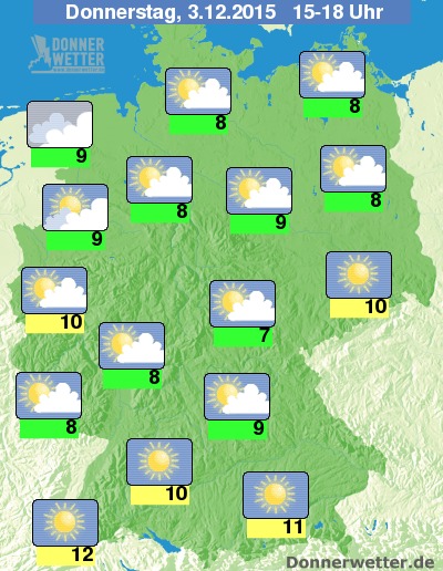 Heute Nachmittag ist es vor allem im Süden und Osten Deutschlands oft heiter, im Süden überwiegend sonnig. Weiter nach Norden und Westen werden die Wolken insgesamt zahlreicher und bis zum Abend hin auch oft dichter, dabei bleibt es aber trocken. Die Temperatur steigt auf 7 Grad im Grabfeld und bis 12 Grad im Oberrhreingraben. An der Nordsee weht ein teils starker Wind.