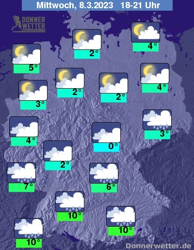 Heute Abend ist der Himmel über dem Norden des Landes meist aufgelockert oder sogar locker bewölkt, dazu bleibt es trocken. Im Süden fällt unter dichter Bewölkung teils langanhaltend Regen. Über Sachsen fällt gebietsweise Regen oder Schnee. Im übrigen Land ist es stark bis dicht bewölkt und weitgehend trocken. Die Temperatur liegt bei 2 Grad in Hamburg und 10 Grad in Freiburg.