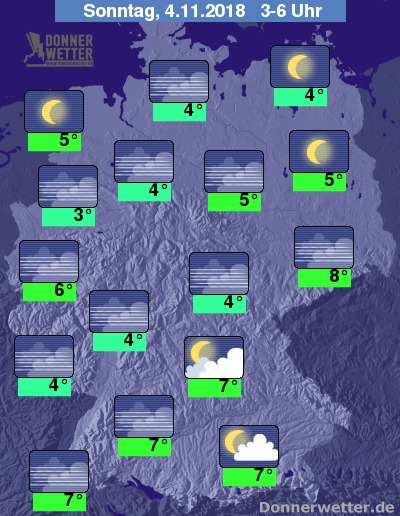 In der kommenden Nacht ist der Himmel verbreitet sternenklar, hier und da sind einige Wolken möglich. Es bildet sich häufig Dunst und stellenweise Nebel, dazu bleibt es trocken. Die Temperatur sinkt auf 8 Grad in Dresden und bis 3 Grad im südlichen Emsland.