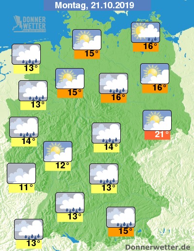In der Nacht zum Montag fällt in den westlichen und nördlichen Landesteilen noch zeitweise Regen, der bis zum Morgen größtenteils abklingt oder abschwächt. Am Morgen regnet es dann nur noch im Nordseeumfeld und im Südwesten weiter. Im übrigen Bundesgebiet ist es meist locker bis aufgelockert bewölkt und trocken. Die Temperatur sinkt auf 13 Grad in Magdeburg und bis 9 Grad im Saargau.