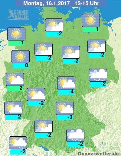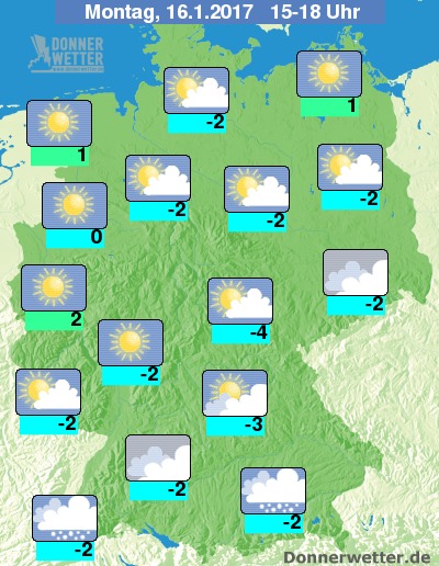 Vielfach freundliche Nachmittagsstunden, Temperaturen um -4 bis +2 Grad C.