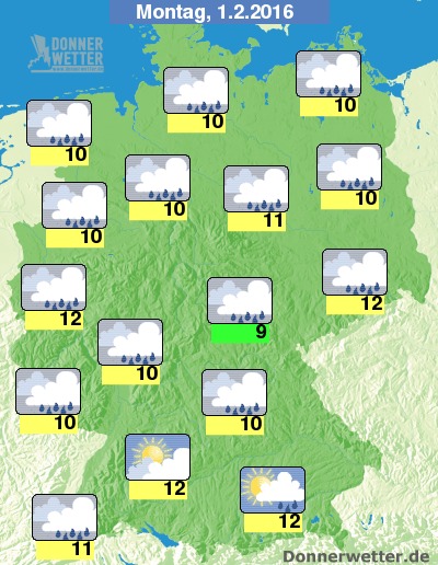 Heute ist der Himmel weitgehend bedeckt, im Süden zeigen sich jedoch mögliche Auflockerungen. In weiten Landesteilen fällt zeitweise, im Süden fällt gebietsweise Regen. Die Temperatur steigt auf 8 Grad am Thüringer Wald und bis 12 Grad in München. Es weht oft starker, an der Nordsee stürmischer Wind.