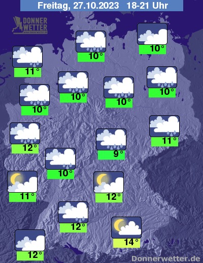 Heute Abend lockert es südlich des Mains häufig auf und es bilden sich ur noch selten Schauer. Weiter nach Norden hin bleibt es hingegen weitgehend dicht bewölkt und besonders im Norden und Osten fällt auch teils langanhaltender Regen. Die Temperatur liegt bei 9 Grad in Jena und 14 Grad in München.