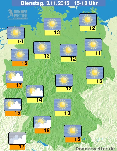 Heute Nachmittag scheint verbreitet die Sonne. Es gibt auch Nebel an der Nordsee und lokal am Rhein und in der Pfalz. Aus Südwesten her ziehen jedoch zunächst lockere, später vor allem im Südwesten auch oft dichte Wolken auf, es bleibt jedoch landesweit trocken.