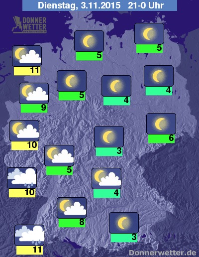 Heute Abend werden die Wolken im Südwesten noch dichter und es fällt hier gebietsweise auch leichter Regen, auch über der übrigen Südwesthälfte ziehen meist lockere Wolken durch, dazu bleibt es aber weitgehend trocken. Im großen Rest der Republik ist es hingegen sternenklar und dazu trocken. Die Abendtemperatur liegt bei 11 Grad am Oberrhrein und etwa 3 Grad im Vogtland.