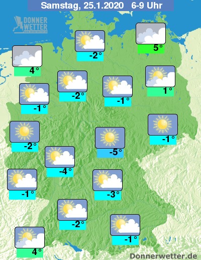 Die Temperaturen liegen in den Frühstunden bei Werten um -5 Grad in den Tälern der Mittelgebirge und um 5 Grad an der Ostseeküste.
