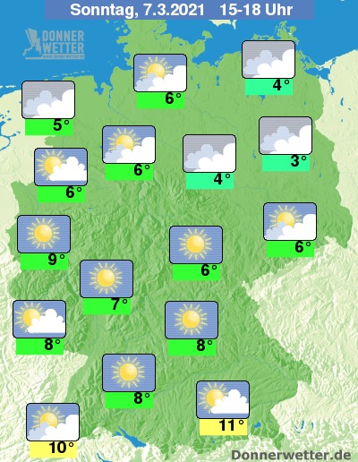 Die Temperaturen erreichen Höchstwerte um 4 Grad auf Usedom und 11 Grad am Alpenrand.