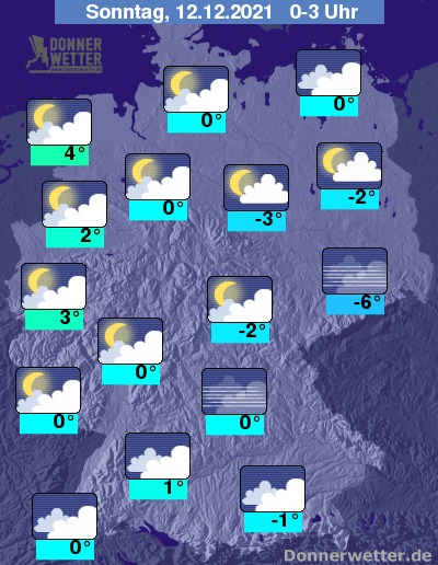 In der Nacht auf Sonntag verdichten sich die Wolken über dem Norden und der Mitte Deutschlands, Schauer beschränken sich meist aber allein auf den äußersten Nordwesten. Im Süden und Südosten ist es teils stark bewölkt oder bedeckt, teils aufgelockert bewölkt und es bleibt meist trocken.