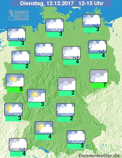 Heute Nachmittag sind im Westen und Südwesten Auflockerungen möglich, dazu ist es hier auch meist trocken. Im übrigen Land halten sich jedoch weitgehend dichte Wolken aus denen zeitweise Regen, Schneeregen oder Schnee fällt, dazu besteht stellenweise Glättegefahr! Die Temperatur liegt bei 2 bis 7 Grad.