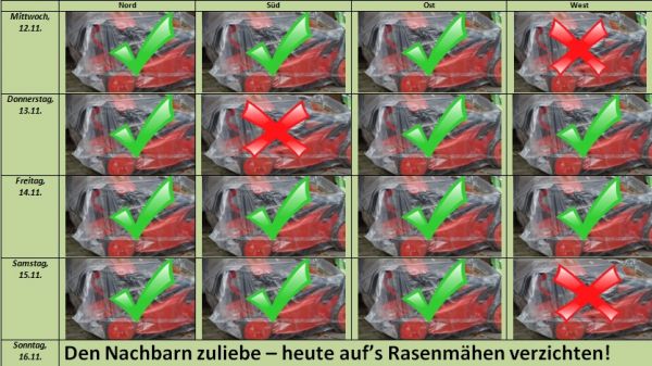 Die Garten- und Mähsaison erstreckt sich in diesem Jahr noch weit in den November hinein. Die milde Witterung sorgt selbst jetzt Mitte November noch für Rasenwuchs.