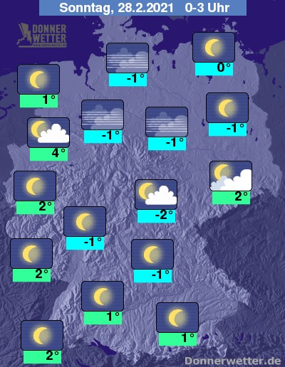 Die Karte stellt die aktuelle Prognose für die Nacht auf Sonntag dar: