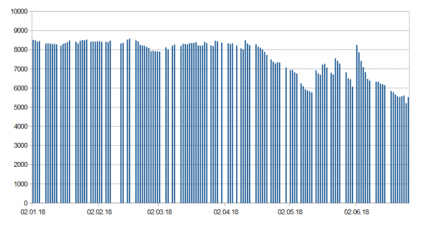 Und auch in den letzten Wochen kann von einem Regensegen für alle keine Rede sein. Die Grafik zeigt die Aufzeichnungen unseres Lysimeters (Messgerät zur Erfassung des Wasserhaushalts in Böden) an unserer Wetterstation in Bonn seit Jahresbeginn. Besonders trocken war demnach die erste Mai- sowie die zweite Junihälfte.
