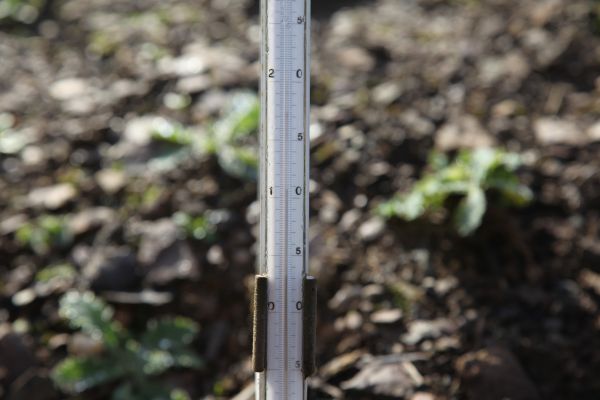 Unser Photo zeigt die Frühtemperatur am Donnerwetter.de Wetterpark in der Eifel von heute Morgen 8 Uhr. Es waren noch 11 Grad C. Ab Dienstag sinken die Werte hier auf 8 Grad C im Boden. In ganz Deutschland werden ab Dienstag in dieser Tiefe kaum mehr als 10 Grad C gemessen, so dass das Rasenwachstum spürbar nachlässt.