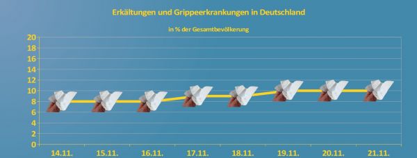 Wechselhafteres aber weiterhin sehr mildes Novemberwetter sorgt in den kommenden Tagen für einen leichten Anstieg von Erkältung, Grippe & Co.