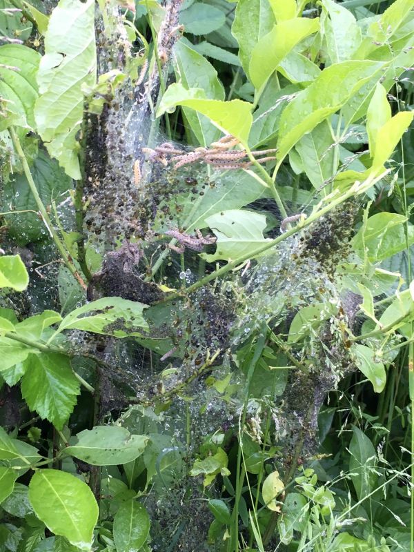 Während sich der Schaden, der hierdurch verursacht wurde, abgesehen von einem schwer verletzten Weltfußballer (wie böse Stimmen behaupten), in Grenzen hielt, sorgt eine andere Unterart der Nachtfalter ebenfalls für viel Aufsehen. Die Gespinstmotte verwandelt Büsche und Bäume Jahr für Jahr in futuristische, bisweilen sogar gespenstisch anmutende, Gebilde.