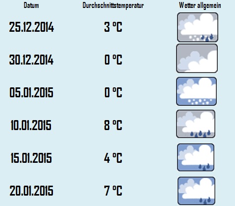 Über Weihnachten wechseln milde und kalte Luftmassen einander ab. Es ist windig und nass. Über den Jahreswechsel setzt sich kurzzeitig eher kalte Luft durch, die Westwinde sind weiterhin mäßig bis stark. Die Temperaturen bleiben für die Jahreszeit knapp zu hoch.