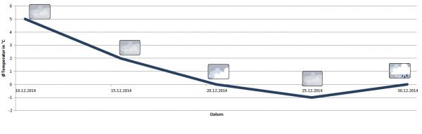 Temperaturabweichung* ca. 1 °C zu mild höchstens 1°C zu mild
